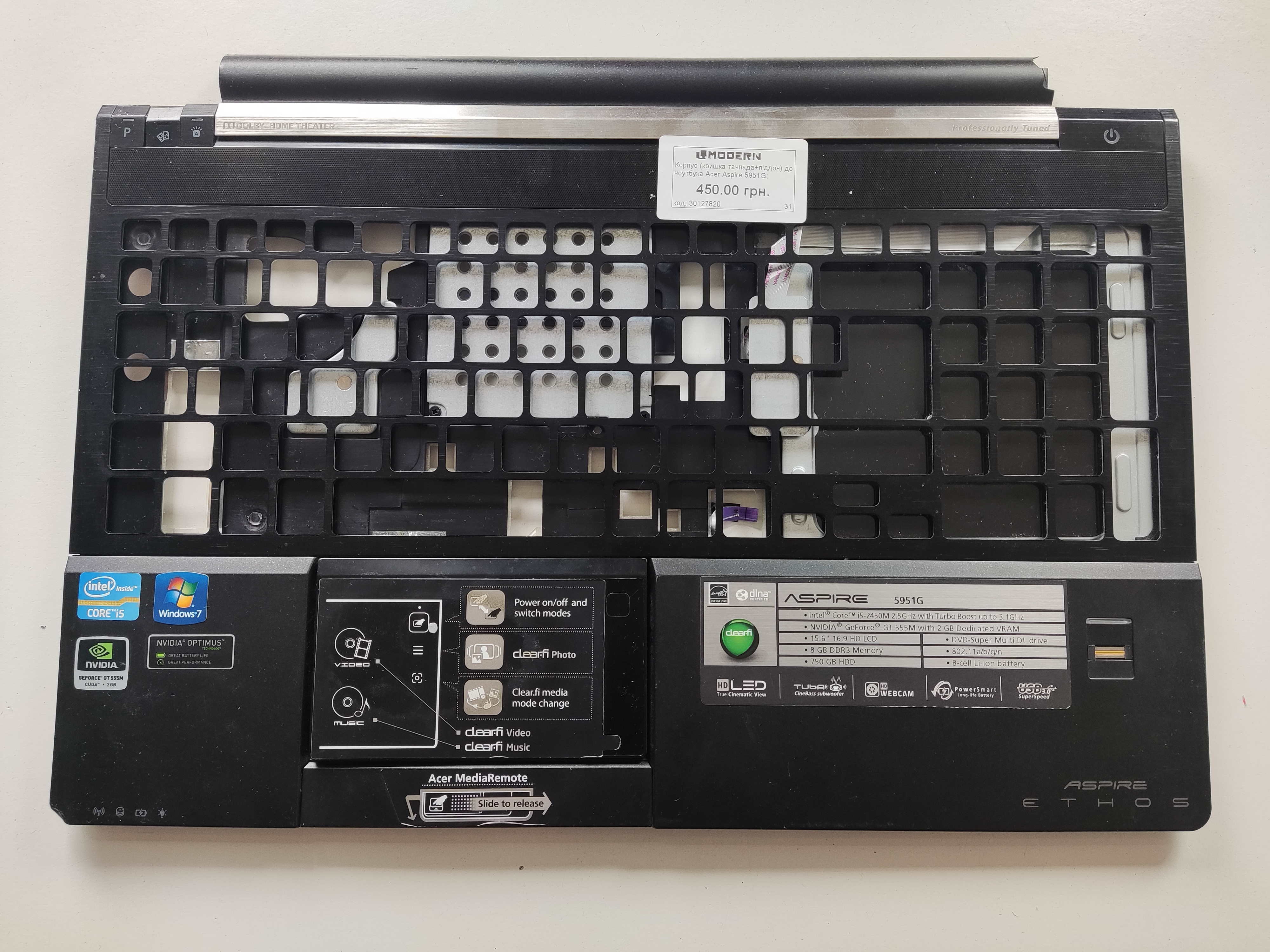 Нижня частина корпусу (кришка тачпаду + піддон) Acer Aspire 5951G
